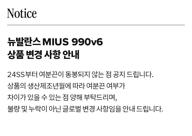 2. 교환 정책 변경 : 뉴발란스 코리아 온라인 공식 홈페이지 구매 상품은 2023년 8월 24일부터 온라인 교환 서비스가 제공되지 않습니다.