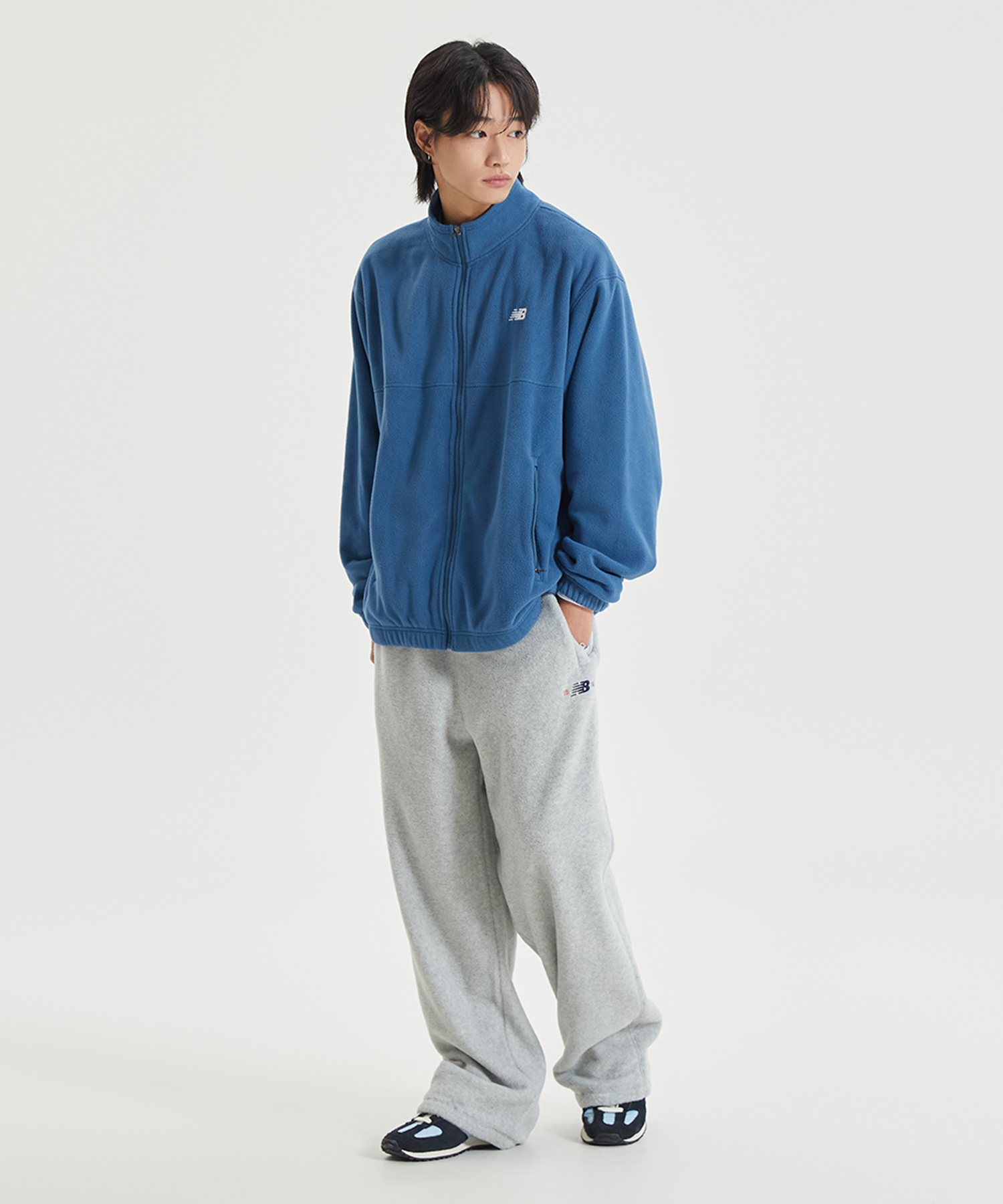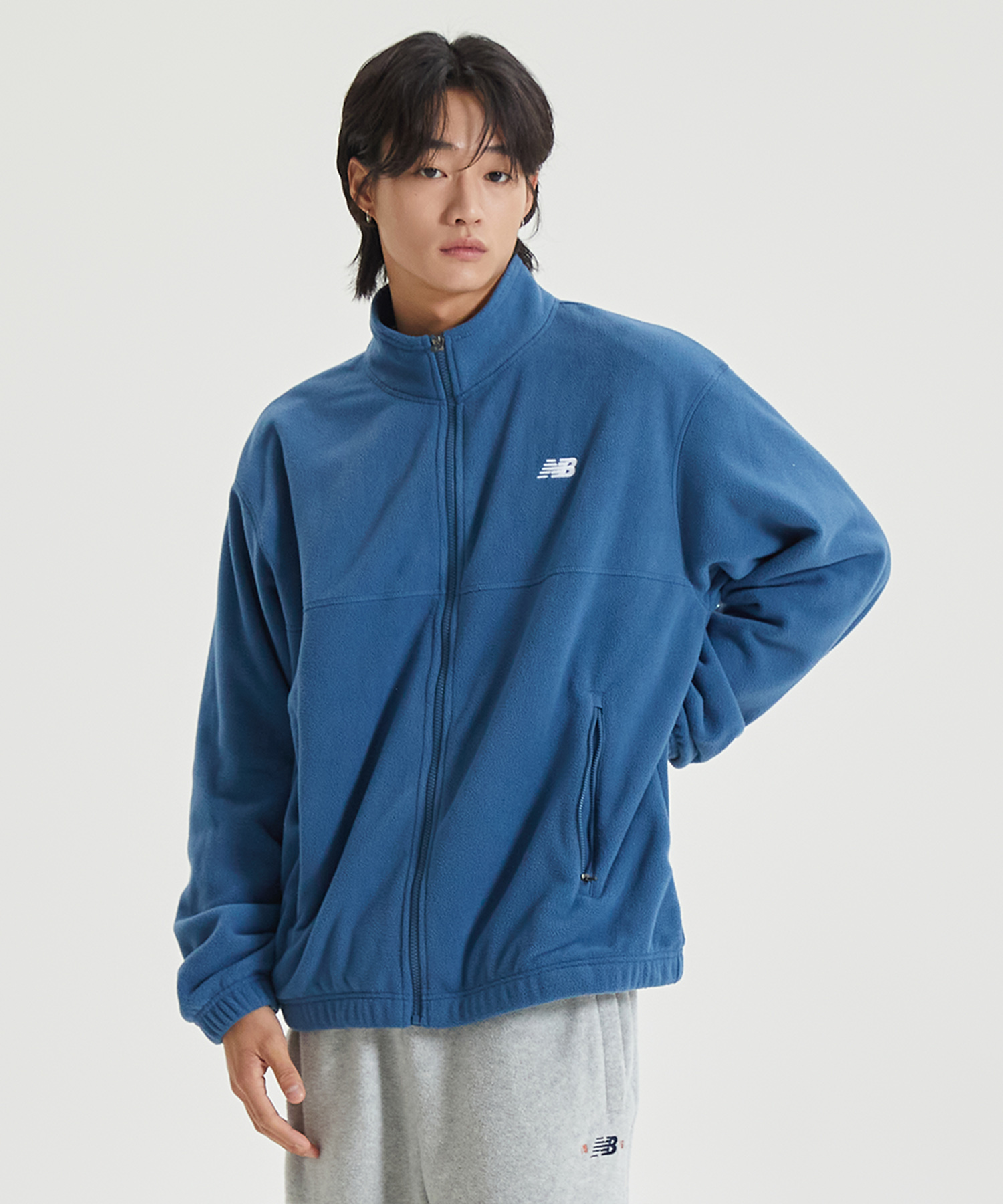 부담스럽지 않게 입을 수 있는 에센셜 플리스 집업입니다