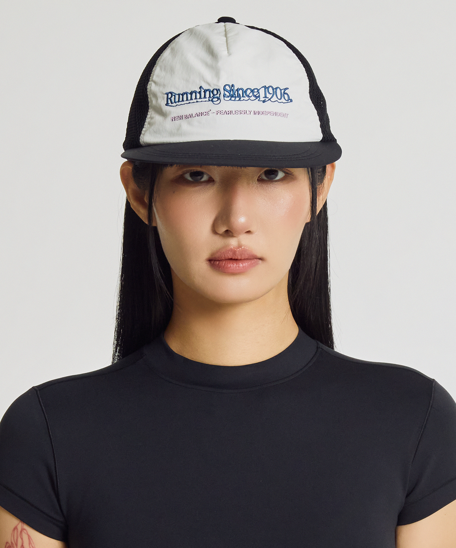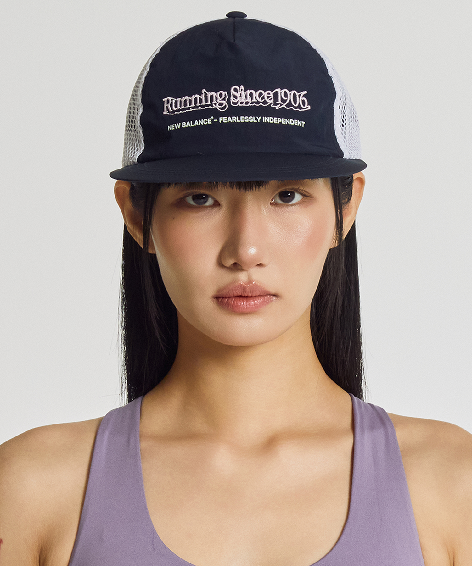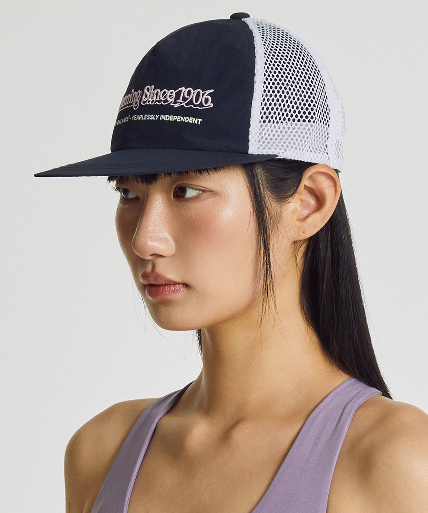 챙이 형태가 잡혀있는 트러커 형태의 러닝캡입니다