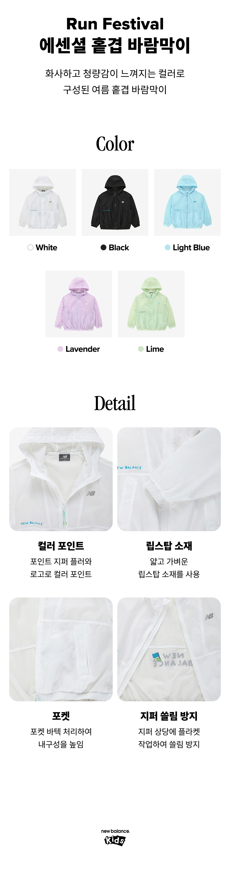 화사하고 청량감이 느껴지는 컬러로 구성된 여름 홑겹 바람막이입니다.