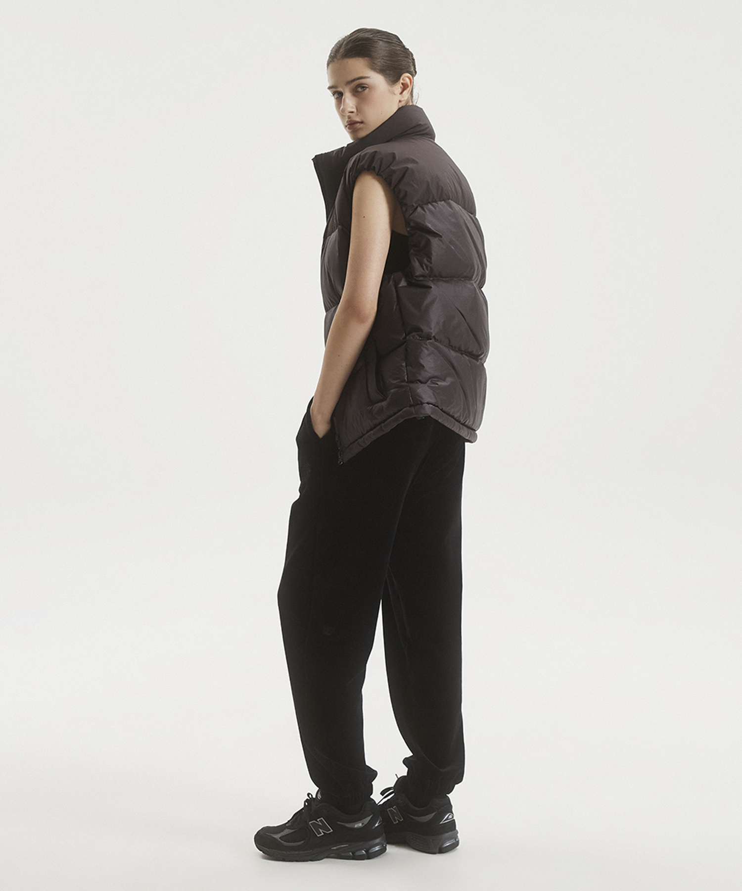 밑단 밴드 내장 형태의 조거팬츠로 활용도 높은 아웃핏 제공합니다