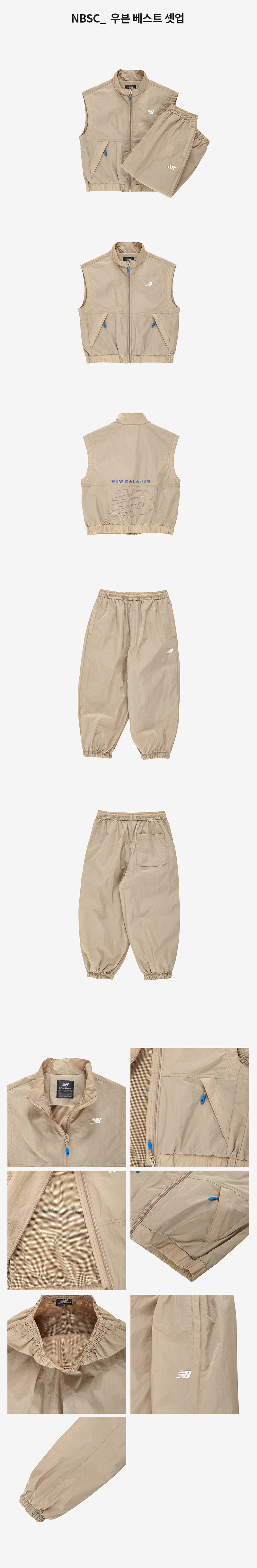 가벼운 우븐 베스트와 조거 팬츠로 구성된 액티브 셋업입니다.