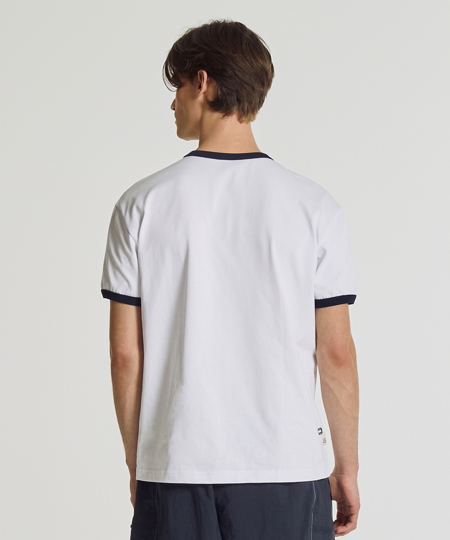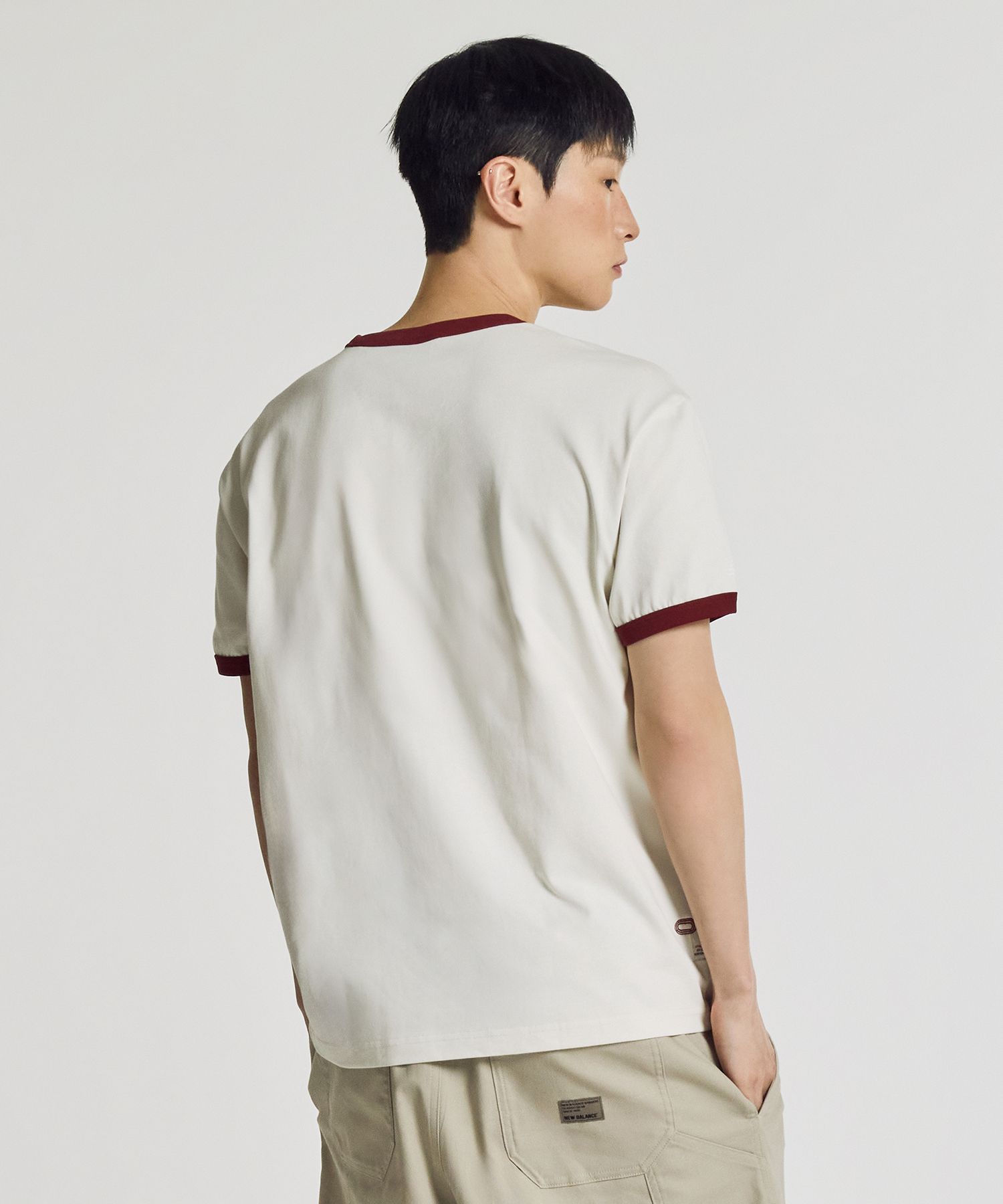 넥라인과 소매반 배색 포인트로 빈티지 무드를 트렌디하게