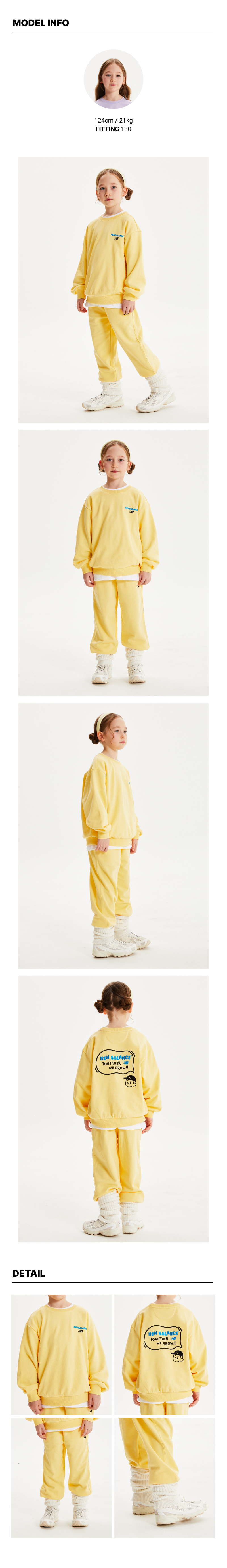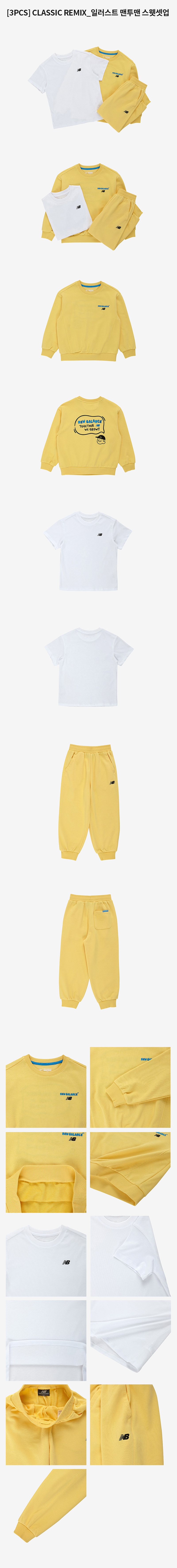 등판의 일러스트와 화사한 봄 컬러 구성이 포인트인 3PCS 맨투맨 스웻 셋업입니다.